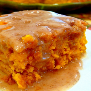 Two-Ingredient Pumpkin Cake with Apple Cider Glaze