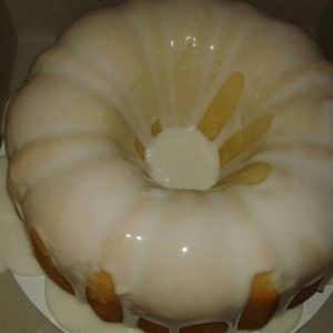 Homemade lemon Pound Cake with lemon glaze.