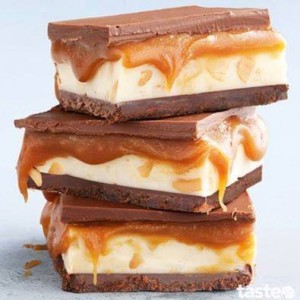 CHOCOLATE TOP CARAMEL SLICE.