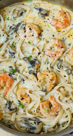 CREAMY SHRIMP & MUSHROOM PASTA