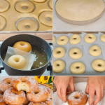 Pour a tablespoon of dough to form a doughnut. Check the top for doneness when the top is lightly browned.