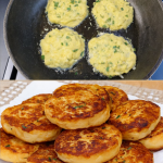 Heat oil in a frying pan. When the oil is hot enough, take some of the dough, roll it in your hand, flatten it like a cake and put it in the oil.